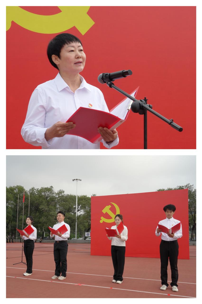 520余名师生党员在校党委委员、组织部部长吴阿古拉的带领下,共同面向党旗,用誓言向党做出庄严承诺。