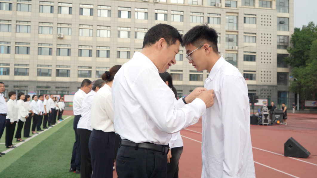 宣誓结束后,进行了老党员为新党员佩戴党员徽章环节,老党员们亲手将党员徽章佩戴在新发展党员的胸前。老党员勉励青年党员继续加强政治理论学习,注重日常言行举止,用实际行动诠释对党的忠诚。