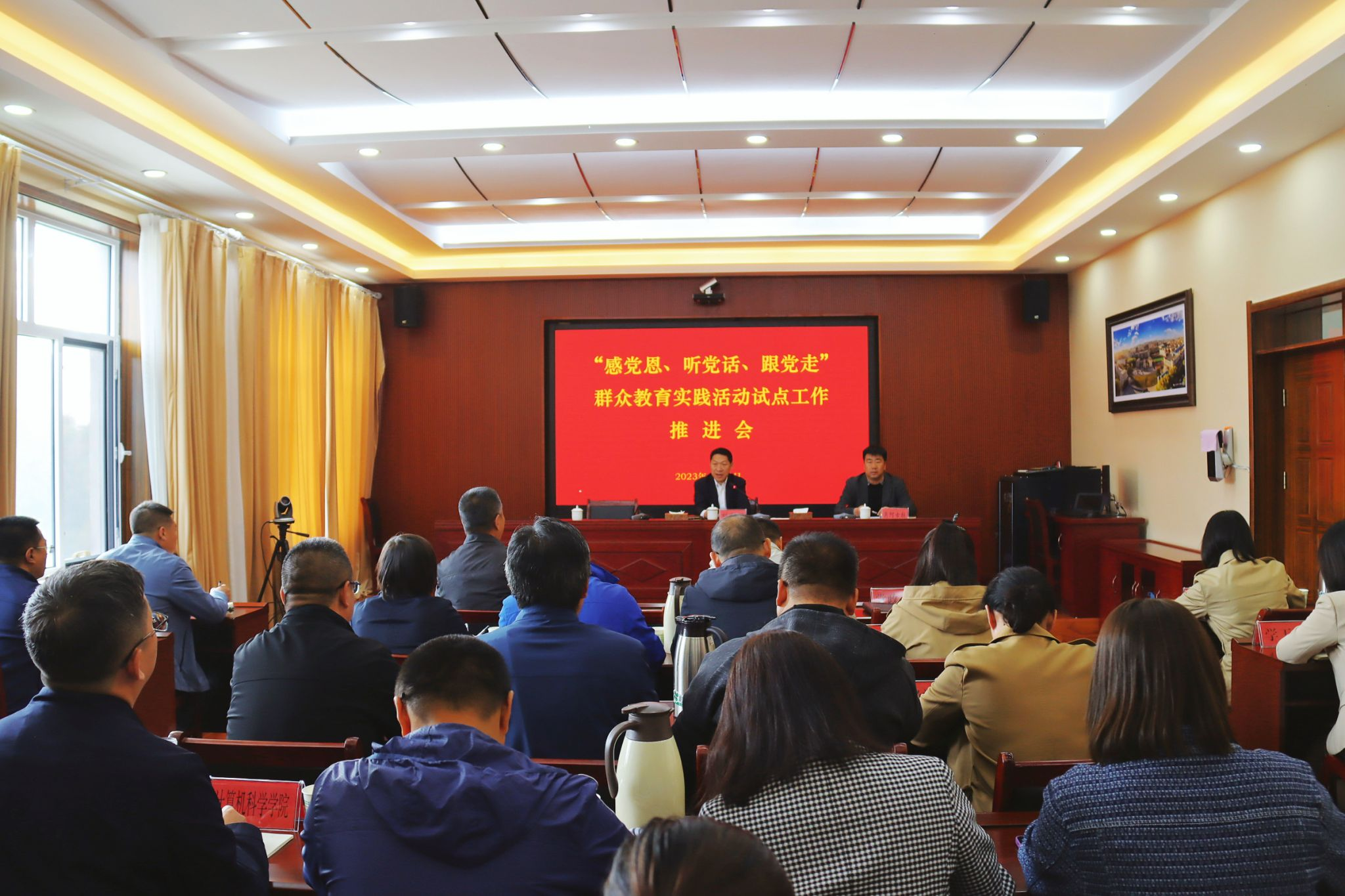 刘九万强调,一要提高政治站位,深化思想认识。要把开展“感党恩、听党话、跟党走”群众教育实践活动作为开展主题教育的后半篇文章,作为学习宣传贯彻党的二十大精神的重要载体,作为全面推进学校各项工作的思想引领,推动教育实践活动走深走实、入脑入心。二要创新活动形式,抓好活动组织。既要广泛开展叙事说理、政策解读、理论宣讲、演讲比赛、读书分享等线下教育实践活动,也要积极开辟线上渠道,利用网络平台,不断提高宣传教育的覆盖率和知晓率。三要强化责任落实,提升工作质效。要按照学校教育实践活动实施方案,进一步细化任务分工,明确工作举措,压实工作责任,精心组织开展,认真梳理总结,培育选树典型,高质量完成好各项工作任务。